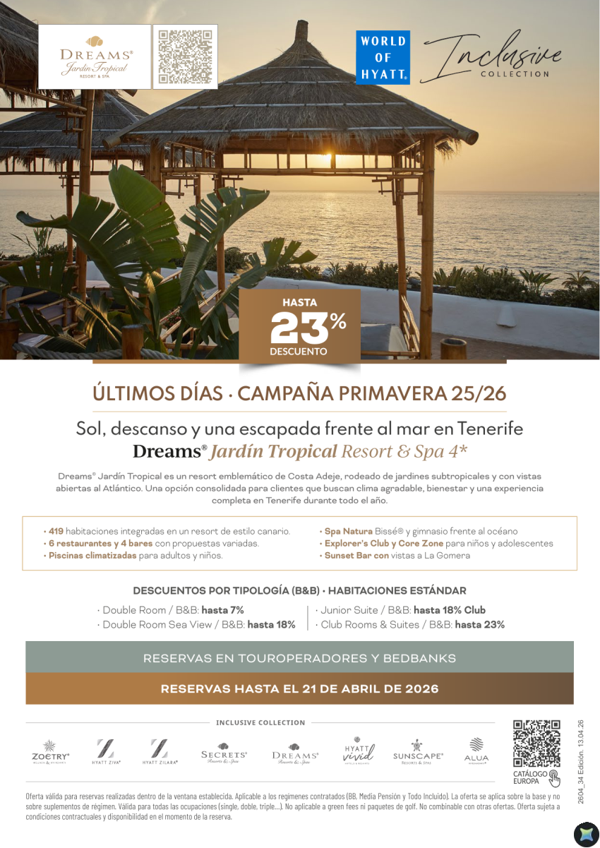 Tenerife con hasta el 23% de Dto. Reserva hasta 21/04 en Dreams Jardin Tropical 4*.